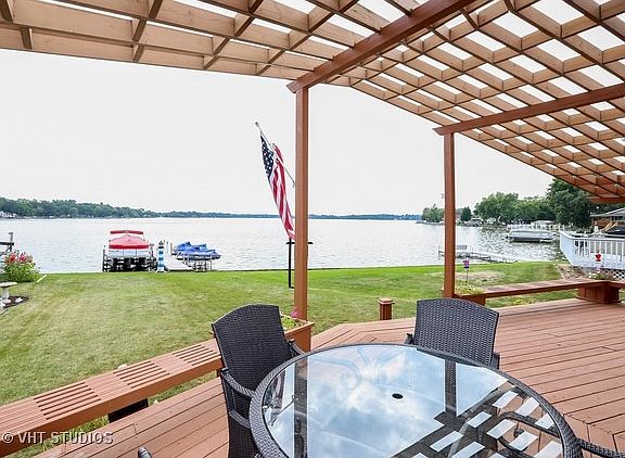 Great looking & meticulously maintained, this cozy home boasts a premier location on Pistakee Lk w/phenomenal views of the water from every angle! Electric dock. With a totally open floor plan, the gorgeous knotty pine vaulted ceiling highlights LR, DR & kitchen. LR offers WB FP w/gas starter/glass doors & screens, ceiling fan, open to kit w/skylights & double sliders to large deck w/outdoor speakers, built-in seating & flower boxes. Ceiling fans in all BRs. Stackable washer/dryer. 5'' crawl which NEVER had water & houses the furnace, hot wtr htr & storage shelves. Roof 2 yrs home & garage. Huge 3-car heated garage, finished & insulated w/cedar closet, 1/2 bath w/hot wtr, 220, an abundance of lighting & large attached heated shed. 17'' concrete caissons built under home during const. for a potential 2nd story. Extra insulation added. Gutters go underground & are directed into PVC piping to lake. This home has an Elevation Certificate and has never flooded.