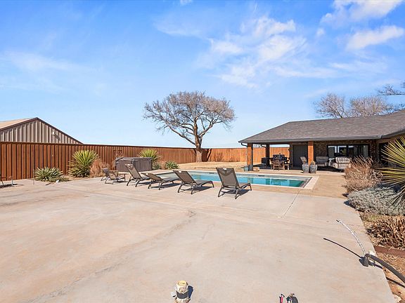 Welcome to your own private retreat in Lubbock, Texas. Situated on 7 acres, this beautifully remodeled 3 bedroom, 3 bathroom home offers space, comfort, and exceptional amenities both inside and out. Remodeled in 2020, the home blends modern updates with warm, inviting finishes. The spacious living room features a stunning stone fireplace, custom built ins and abundant natural light. Electric blinds in the living room and office provide added convenience and comfort. The open concept layout flows seamlessly into the fully updated kitchen, making the space ideal for everyday living and hosting. The primary suite and additional bedrooms offer ample space and privacy, while all three bathrooms have been tastefully updated. Rich vinyl flooring and thoughtful details throughout the home create a cohesive and polished feel. Step outside and enjoy everything this property has to offer. The back patio includes electric porch screens and an in ground pool making it perfect for entertaining during warm West Texas summers, with plenty of room to gather, relax, and enjoy the wide open views. The acreage provides endless possibilities for animals or simply enjoying peaceful country living. In addition to the main home and attached 2 car garage, the property includes a 30 x 70 barn. There is also a separate efficiency dwelling that is heated and cooled, offering 2 bedrooms, 1 bathroom, and approximately 1,091 square feet. This additional living space is perfect for guests, extended family, or rental income potential. If you are looking for a move in ready home with acreage, modern updates, and incredible entertaining space, this Lubbock property delivers the best of country living with convenient access to town.