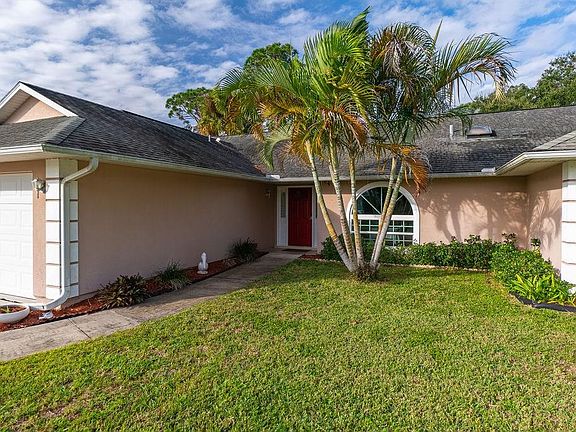 Popular "St. Croix" model this home is a must see! 212 foot deep lot with rear access road for your toys, large screened porch and privacy fence surround this amazing yard. Home features new Impact windows, updated plumbing, and A/C 2018. This home has lots of room with Separate Formal Living, Dining, and Family room. Just down the street from a city park and 10 minutes to the Beach!
