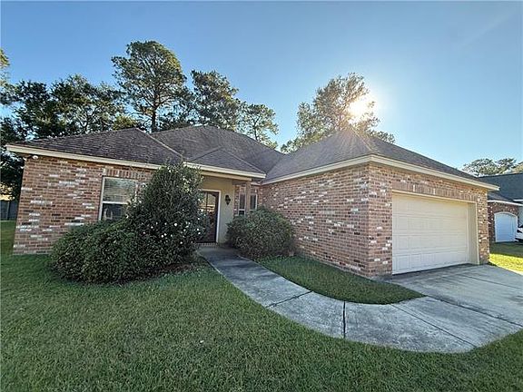 Nestled in the heart of family-friendly Mandeville, this beautifully updated 3-bedroom, 2-bathroom single-family home spans 1,800 sq ft of light-filled living space. Built in 2015, it boasts an open-concept layout with crown molding and soaring 9-foot ceilings. The expansive great room features neutral beige walls and abundant natural light pouring in from large windows. The kitchen shines with granite countertops, sleek stainless steel appliances, rich wood cabinetry, and a generous breakfast bar that overlooks the living area. Retreat to the primary suite, complete with a walk-in closet and a luxurious en-suite bath offering dual vanities, granite-topped counters, garden tub and a separate shower. Practical touches abound, including a dedicated laundry room with built-in storage. Outside, the classic brick exterior welcomes you with a tidy front lawn and mature landscaping. Enjoy the low-maintenance backyard, featuring a covered patio ideal for outdoor gatherings. Location perks seal the deal: Just minutes from Lake Pontchartrain's beaches, Old Mandeville's charming shops and cafes, and top-rated schools like Pontchartrain Elementary. With easy I-12 access for a quick 20-mile commute to New Orleans, plus nearby trails, golf courses, and the scenic Tammany Trace.