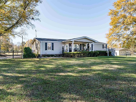 Looking for a home with land 5+/- ac. and no HOA. This lovely home is for you. Enjoy your morning coffee or quite evenings on your Rocking Chair front porch. Oversize deck great for entertaining. As you enter the home you are welcomed by an open floor plan with valuted ceilings and fireplace. Your kitchen, dining and laundry are located to your right. The kitchen features oak cabinets and tons of counter space. Split bedroom plan with the Owners Suite located to the right featuring two closets and full bath. Two additional bedrooms to your left with walk-in closets. Outside you will find a covered area for your car, circular drive, additional two car garage with electricity and beautiful open land. Call and schedule your showing today.