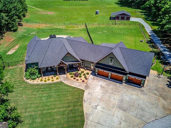 Welcome to your private slice of the countryside. Set on 7.832 acres of open pastureland, this stunning Craftsman home captures the best of country living with elegance and charm. The long gravel drive leads to a home that instantly impresses with its curb appeal and sweeping views. Inside, every detail shines with a wood ceiling foyer, a floor to ceiling stone fireplace, and a private office featuring a hidden storage room behind built ins. The kitchen is the heart of the home, offering a large island, custom cabinetry, shiplapped ceilings, and a beautiful walk in pantry. The oversized primary suite provides a spa style bath with a soaking tub, separate shower, and a spacious walk in closet that connects directly to the laundry room. Three additional bedrooms and two full baths, including a Jack and Jill, complete the main level. Upstairs, a bonus room, bedroom, and bath create the perfect private suite, complete with a secret attic passage. The home also includes an air conditioned three car garage, perfect for the car enthusiast or those needing extra space for storage or hobbies. Step outside to a covered patio overlooking a custom in ground pool surrounded by wide open pasture views. A detached shop with a garage bay adds even more versatility to this remarkable property, offering space for projects, tools, or equipment. This home perfectly combines space, comfort, and a peaceful lifestyle.