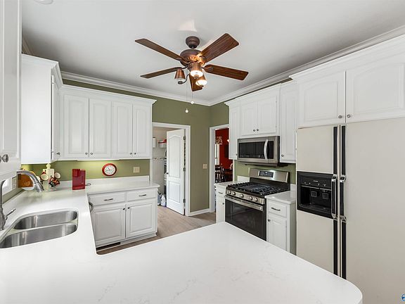 This exquisite residence, nestled in Lakeview Shores boast easy access to nearby Lake Guntersville. Great for fishing and water sports . This home radiates charm. Move-in ready with recent upgrades include newly modernized Kitchen with beautiful quartz counter tops, refurbished cabinets, luxury vinyl flooring new gas range. Plenty of room for family gatherings, 4 bedrooms, 3 full-baths. Primary and 2nd bedroom/office is located on main floor. plenty of storage area and walk-in closets. Primary bathroom has luxurious whirlpool tub, walk-shower, 2 separate vanities with makeup area. If you seek an extraordinary lifestyle , this residence is tailor-made for you.