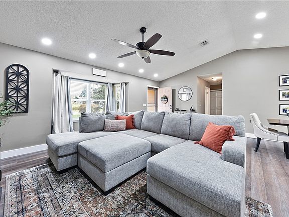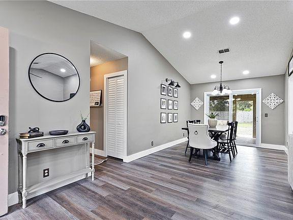 Updated 4 bedroom 2 bath home with large back yard! Wide baseboards, quartz conters in kitchen and updated bathroom vanities, neutral colors. Spacious living room features bay window area, vaulted ceiling and is open to the dining room. Fully equipped kitchen has sparkly white quartz counters, pantry cabinet wall with coffee bar, deep composite sink with windows above and view of the expansive back yard. Serene owners bedroom has walk in closet with built ins and private bath. Closets in home have solid wood shelving. Other features include, screened back patio, water softener, garage, new plank flooring and 2" white faux wood blinds throughout. Close to NSB Kingsbay and easily access to exit 1 of I95.