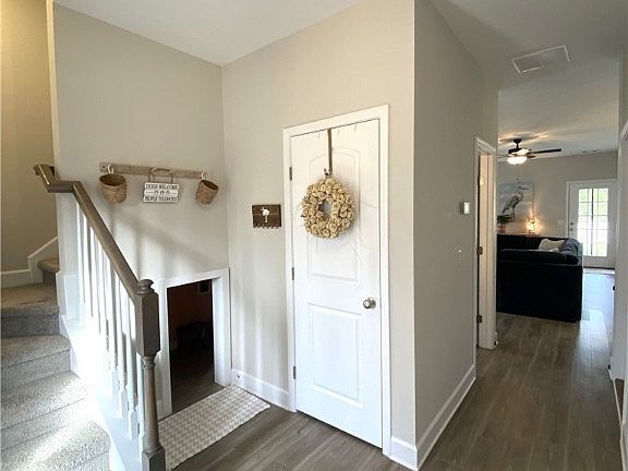 This charming 4-bedroom, 2.5-bath home offers the perfect blend of comfort and style. Step inside to an inviting open-concept floor plan that's ideal for entertaining and everyday living. The built-in dog nook under the stairs adds so much charm and character to the entryway. The spacious kitchen flows seamlessly into the living and dining areas, making it easy to stay connected with family and guests. Upstairs, you'll find all four bedrooms, including a generous master suite featuring a large walk-in closet and an en suite bathroom complete with a garden tub, separate shower, and double vanity. Enjoy outdoor living in your fenced-in backyard perfect for pets, play, or peaceful relaxation.
