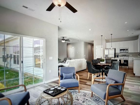 Built a year ago, this is a 3 bedroom, 2 full bath ranch home with 2 car garage and huge back and side yard. It's a quick 5 minutes from downtown Delaware and 4 minutes from Meijer and other shopping and dining. The duplex home provides easy living with an open floor plan, no steps (and no basement). Luxury vinyl flooring throughout the home for a lovely hardwood look. The kitchen features granite countertops with a spacious island, plus all-new stainless appliances, including a fridge with ice/water in-door dispenser. The cabinets have upgraded hardware, as do the 2 bathrooms. A lovely sunroom opens to a new concrete patio. You have access to several off-street parking spaces near the driveway and garage. Large master bath with double granite sink, walk-in shower and huge walk-in closet. Upgraded light fixtures were installed. There is a spacious laundry room with W/D hook-up. ASK IF YOU'D LIKE AN OPTIONAL WASHER/DRYER.