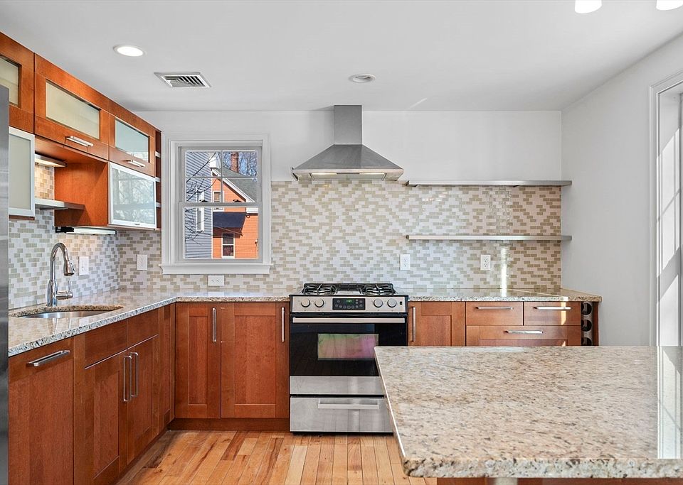 - Features: Flooring - Hardwood, Dining Area, Countertops - Stone/Granite/Solid, Kitchen Island, Cabinets - Upgraded, Open Floorplan, Recessed Lighting, Remodeled, Stainless Steel Appliances