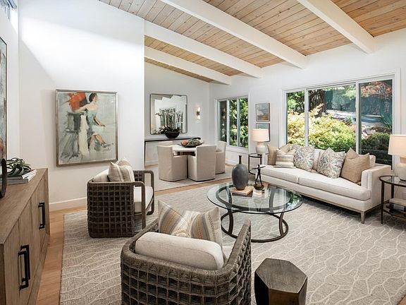 Flexible spaces abound -- this beautifully updated home is designed to meet your every need. Step inside to catch hillside glimpses, then continue to the heart of the home where the inviting kitchen-family room combo reveals jaw-dropping canyon vistas. Recently refreshed with a new roof, the residence blends sophistication, comfort, and versatility across three gracious levels. The main floor showcases a chef-worthy kitchen with striking counters, Sub-Zero, GE Monogram, and Bosch appliances, plus a breakfast bar that flows seamlessly into the family room and view deck. A chic powder room and soaring-ceiling living/dining area complete the level. Downstairs, the luxurious two-room primary suite offers a walk-in closet, en-suite bath, and an adjoining flex space--perfect for a home office, nursery, or exercise room--alongside 2 additional bedrooms, a well-appointed bath, den, and laundry room. On the lower level, a full bath and family room with NanaWall doors open to expansive decks, ideal for guests, an au pair, or a teen retreat. Enjoy the built-in spa, wine storage, vegetable beds, garden room, and stunning terraced gardens. Additional highlights include new engineered wood floors, LED lighting, and access to top-rated Arundel, Tierra Linda, and Carlmont schools.