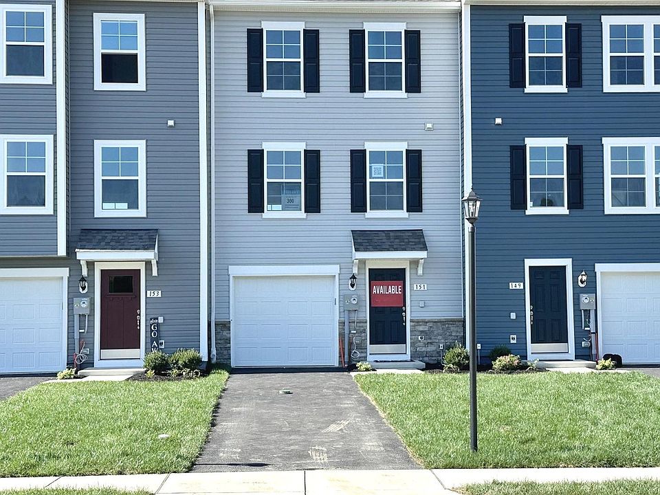 Make your appointment to see the ONLY NEW 1 car garage townhome over 2,000 with a 10 x 14 composite deck with steps with private views in front and behind the home in Homestead Acres. Meet the York, the very last York with a full extension off the back of the home. When standing outside you will see no homes across the street from this home, a 40 ft. asphalt driveway that can park 2 vehicles in addition to the garage space. This home features light gray siding, a beautiful stone stacked stone water table and a covered front entry. The front yard is fully sodded and the entry way has a charming landscaping installed. Step inside to the Luxury Vinyl Plank flooring in the foyer and a large coat closet. Entryway to the garage is on the left and you will see the garage is thoughtfully angles to allow you to open your car door with ease. The garage is fully drywalled, taped and blocked and includes a wi-fi enabled garage door opener, with 2 remotes and a convenient outdoor keypad. Walking back you will find a large finished carpeted basement that includes a powder room rough in and a large finished storage closet. Climb the 40 in wide steps to the main level and enjoy a completely open floorplan on the main level. The kitchen features painted taupe cabinets. The upper 42" cabinets reach the ceiling offering more storage and the prep island is over 8.5 ft. wide. Cabinets are accented by a light Italian Quartz with delicate veining, black matte knobs, 3 charming dark pendants and a black matte goose-neck faucet with pull down sprayer for the single bowl stainless sink. The 3 x 8 offset white Blanco ceramic tile backsplash is the finishing touch to this designer inspired kitchen palate. The family room to the left of the kitchen is spacious enough for a sectional and includes a data/cable prewire for a TV and a ceiling fan prewire and 4 LED lights. The powder room is located at the front of the home near the steps. To the right of the kitchen you will have a flexible space for an eat in kitchen and large sunroom extension that could fit a farm sized table if you want to invite everyone over for Thanksgiving. Sunroom also features a pre-wire for a ceiling fan. Step outside to the 10 x 14 composite deck off the slider in sunroom that leads to the fully sodded backyard and beautiful sunset views. Outside the deck features a 8 ft. wide x 6 ft. high privacy panel separating you from your neighbors. Want to add a fence later, no problem, fences are allowed with HOA approval. Upstairs the primary suite is over 17.5 ft. x 13 ft. offering plenty of room for a king-sized bed and large furniture. The primary bath features a comfort height quartz 2 sink vanity, separate walk in shower with glass door and a SOAKING TUB!!! The primary suite also features a spacious walk in closet and ceiling fan prewire that can accommodate a fan, light, or combo with 2 separate switches. Two secondary bedrooms share a bathroom with a tub shower combo. The laundry closet across from the hall bath is conveniently located. Both secondary bedrooms feature vaulted ceilings which is perfect for bunk or loft beds. Each features a ceiling fan pre-wire. This home is ready to tour and is our very last York with Sunroom extension on all three levels. Call today to see this unique spacious townhome.