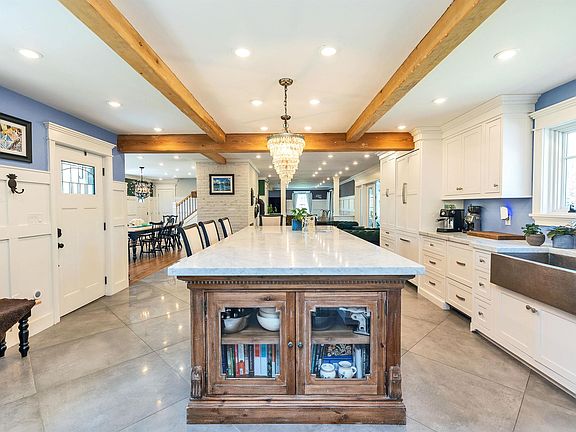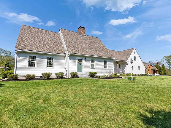 Elegant reproduction Cape-style home set on nearly 35 private acres in the Monadnock region. Highlights include a modern chef's kitchen, marble countertops, premium appliances, a fireplaced dining room, and a breezy three-season porch with a large deck overlooking the peaceful landscape. The formal living room and sitting area, complete with a wood stove, complement the main living level. The upstairs features two primary bedroom ensuites, walk-in closets, 2 additional bedrooms, a sewing room, and laundry. A separate au pair or in-law suite with a private entrance provides flexible living space. The property has radiant heat, high-speed internet, a whole-house generator, a full basement, and an attached 3-car garage. A stunning carriage house, inspired by barn architecture, offers a full kitchen, a first-floor bedroom, spa bath, and loft space for hobbies or an office. Garden seating with pergola for enjoying the sunset, perennials, vineyard, acres of open fields and mature trees. This idyllic mountain retreat has 12 raised vegetable beds and a luxe insulated chicken coop. For the outdoor enthusiasts, hike to the quartz outcrop of the White Ledges or drive to take in the sweeping views and migrating hawks from the summit of Pack Monadnock at Miller State Park. Stop by the sugar shack for local maple treats, or visit a working dairy farm. Just over 4 hours from NYC and 90 minutes from Boston, winding country roads lead to a place of quiet majestic beauty.