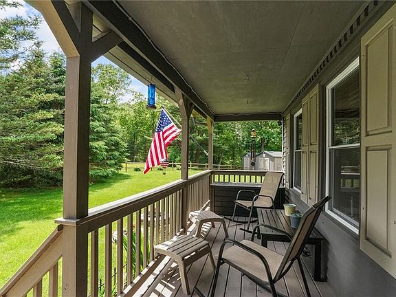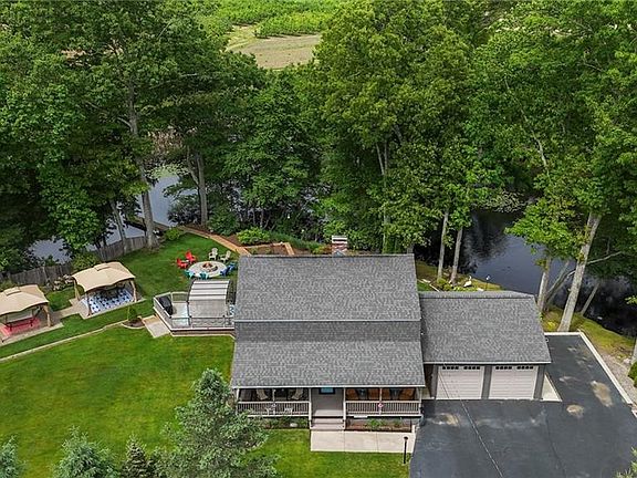 Welcome to 151 Indian Run Trail, a welcoming 3 bed, 1.5 bath Smithfield retreat where contemporary updates meet serene, scenic living. An inviting front porch takes you directly into the dining room, where you will be immediately impressed by a beautifully remodeled kitchen, featuring quartz countertops, stainless steel appliances, abundant cabinetry, and a breakfast bar. Completing the main level is an oversized living room that leads into the climate controlled four-season room. Relax during any season in this peaceful retreat, taking in all the nature around you. Upstairs are three spacious bedrooms including a generous primary. On the lower level, there is a theatre room, laundry area, workout space, and a walkout. Easy access from the kitchen to the oversized, heated garage showcasing 9’x8’ doors and a durable concrete coating providing plenty of room for larger vehicles. A newer roof, leaf guards, mini splits, and oil tank round out the updated mechanicals. Additional storage is available in the sizable sheds, an oversized deck and pergola with two oversized outdoor paver patios allow extra space for entertaining. Set on a quaint dead-end road on Lower Sprague Reservoir in Smithfield, this gem offers unique living ideal for canoeing, kayaking and fishing. Close to Deerfield Park, local schools and all the amenities of Route 44. Blending modern amenities with a tranquil lifestyle, 151 Indian Run Trail awaits its new caretaker…