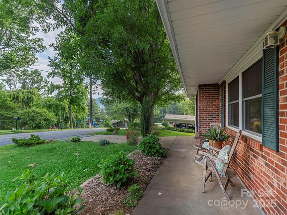 Welcome to this well-maintained 3-bedroom, 2-bathroom brick rancher offering easy, single-level living with zero-step entry-perfect for accessibility and convenience. Ideally located just minutes from Haywood Regional Medical Center, with a quick commute to both Waynesville and Asheville. The home sits on a generous lot with room to roam and a fenced backyard featuring a playground-great for play or pets. Inside, enjoy a cozy wood-burning fireplace, gleaming hardwood floors, and large windows that fill the space with natural light. The stylish kitchen features granite countertops, two-tone cabinetry, and stainless steel appliances-ready for all your culinary adventures. Need room to expand? The unfinished basement offers excellent potential, complete with a one-car garage and interior access. A perfect blend of comfort, functionality, and location-this home has it all!