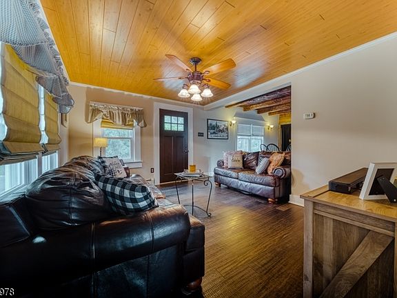 Discover the charm of this historic home, set on 1.5 acres of park-like grounds with a sparkling in-ground gunite pool. A perfect blend of character and comfort, this unique property is not to be missed. The first floor features a spacious eat-in kitchen with a cozy wood-burning fireplace, opening to a dining room with original beamed ceilings. A bright living room and a versatile den/office complete the main level an ideal layout for both everyday living and entertaining. Upstairs, the large primary bedroom is accompanied by two inviting guest bedrooms and a full hall bath. A second office or sitting room provides flexible space to suit your needs. The walkout basement includes a convenient full bathroom perfect for easy access from the pool and deck as well as the laundry area and abundant storage. Step outside to the patio and deck that frame the beautiful pool, all overlooking the stunning property ideal for gatherings or peaceful relaxation Located close to transportation and downtown Basking Ridge, this home combines history, charm, and modern convenience.