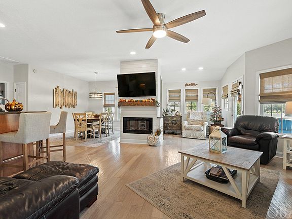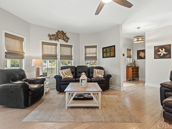 Welcome to this charming home nestled in the waterfront community of Riversedge. The expansive front porch sets a welcoming tone. Relax and enjoy the views! As you enter the home, you will immediately appreciate the open floor plan, offering seamless transitions from one living space to another. The tastefully designed interior features ample natural light, creating a warm and inviting atmosphere throughout. Freshly painted inside & out. Whether you are a seasoned chef, a busy parent, or an avid entertainer, this kitchen with its sprawling counters, cabinets, breakfast bar and stainless steel appliances is sure to exceed your expectations. One of the highlights of this home is the master suite located on the first floor, providing convenience for the homeowner. This spacious retreat offers a tranquil escape with its well-appointed design , walk-in closets and en-suite bathroom. The bathroom features a tiled shower and a deep soaking tub. Additionally, there are 3 bedrooms upstairs including a Jr. master suite. Step outside and you'll discover the added joys of this property. The heated inground saltwater pool awaits, inviting you to take a refreshing dip. Additionally, this property offers access to a private community dock along the sound, enabling you to indulge in fishing, picturesque boat rides, or simply enjoy the mesmerizing sunrise views. Walking paths, a waterfront park, tennis or pickle ball courts are nearby and are just a sampling of the community's offerings. Close enough to the VA border yet a short distance from NC's beautiful Outer Banks and a boat ride away to the wild horses of Carova. Don't miss the opportunity to make this outstanding property your own and enjoy the charm and conveniences it offers.