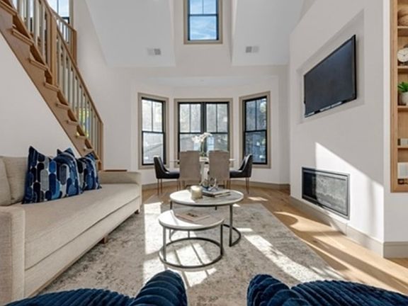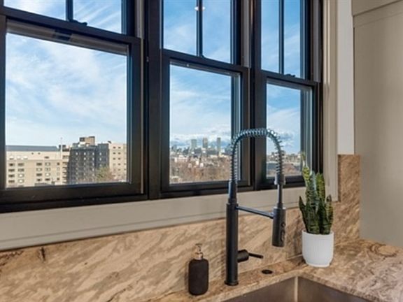 Stunning penthouse situated in Coolidge Corner with the panoramic views of Boston skyline. Enter through a private entrance with bespoke millwork, leading to an expansive living area with commanding 20-foot vaulted ceilings. The space exudes elegance with its open staircase and distinctive architectural details. Oversized windows fill the spaces with natural light & warmth, complemented by a cozy gas fireplace. The kitchen is a chef's dream, equipped with Miele appliances & European cabinetry. Enjoy the city views from your rear-facing balcony & the numerous windows throughout the home. The primary suite offers a tranquil escape with large windows, 2 walk-in closets, & an opulent en-suite bathroom. The upper level features 3 additional bedrooms, 2 full baths, & a lounge overlooking the living room. Completing this exceptional home are a bright flex-room with glass entry doors & two inviting private outdoor spaces, making it a true urban sanctuary. Pets welcome.