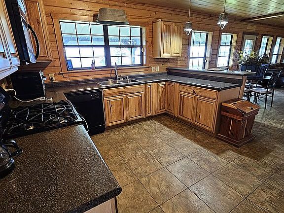 2 BR /1 Bath Log Cabin on Toledo Bend on a 1 acre waterfront lot in a gated subdivision . Attached garage with an outdoor kitchen and patio 1140 sq ft. Enclosed boat shed 940 sq ft . Boathouse with a fish cleaning room .