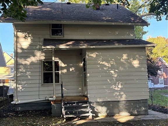 Ready to move-in 3 bedroom 2 bath Cape Cod style home. Inviting front porch. Freshly painted interior. Large Living Room with decorative fireplace and built-in shelving. Formal Dining Room. Kitchen with new stove and new refrigerator. Second Floor has 3 bedrooms and full bathroom. Updated bathroom features new flooring, new vanity, new medicine cabinet and light. Clean basement has full bath with new vanity and shower. Washer and dryer hook-up also in basement. Updated electric panel 2024. New main water line to street and updated water lines 2025. Rubber roofing installed 2020. Gutter guards on a gutters. Attached one car garage has entry into basement. Storage shed in rear yard.