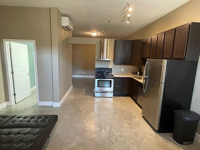 This one-bedroom furnished unit located on the first floor has concrete floors, dark chocolate cabinets, and stainless-steel appliances. The spacious bathroom has plenty of lighting and a walk-in shower. Off the bedroom is a nice size walk-in closet. Laundry Room on same level. 24 hour work out facility on the main level. Water, Sewer, Trash is included. Tenant is responsible for electric. Private lobby and courtyard area. Dedicated large off-street parking lot. Locked keycode access to enter building and unit. Entire building is non-smoking. Building and units equipped with a fire alarm system and sprinkler system. All units have a tankless water heater. One year lease. Shorter lease possible with increased rental rate. Lessor is a licensed Missouri broker.