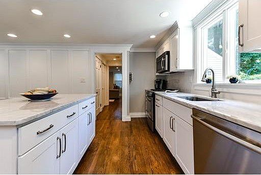 This beautiful colonial near the heart of Needham Center is a must see! Completely renovated in 2015, this home features an open floor plan, high-end finishes, quality craftsmanship and is located in one of Needham's most desirable neighborhoods. The first floor features a sun filled living room, playroom, mudroom with built-in cabinets, and a gourmet kitchen with a large center island. All four bedrooms are on the second floor, including a luxurious master with ensuite bathroom and spacious walk-in closet. The latest homeowners have fully fenced in the large back yard, added maintenance-free vinyl siding, and solar panels which offer you the ability to live greener all while saving you money! This home is conveniently located within walking distance to town center, commuter rail, grocery store, restaurants and Rosemary pool. BONUS: brand new Sunita Williams Elementary School opening this Fall. This gem is the perfect combination of charm, style, and sophistication.