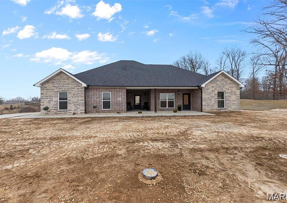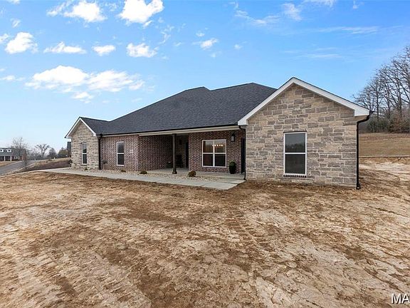 All brick and stone home on 1.26 acres in Jackson, offering 1,855 sq. ft. with 3 bedrooms, 2 full baths, and a 2-car garage. The open-concept kitchen, dining, and living area includes a 9-foot island with a sink & dishwasher, champagne gold hardware, a pot filler, an induction stove with a gas hookup option, & a custom wood vent hood. All wood cabinetry, vanities, built-in shelving & vent hood are custom made by Beussink Brothers Woodworks. The primary bath features double vanities, two storage towers, soaking tub, shower with rain head & a custom walk-in closet. The hall bath includes double vanities & a tub-shower combo. The laundry room has a sink, storage cabinets, & built-in hanging rod. Additional features: all quartz countertops throughout, cathedral and tray ceilings, gas fireplace, front & back covered patios, exterior soffit lighting, Samsung kitchen appliances, 4 ceiling fans, & an oversized entry closet from the garage. Wood & stone tile flooring throughout.