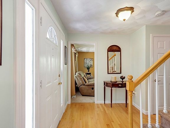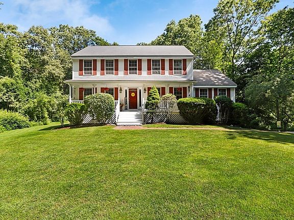 This gorgeous Garrison Colonial is located in a private setting surrounded by beautiful old stone walls. This home boasts a picturesque farmers porch and functional contemporary floor. The spacious living room features vaulted ceilings, bay windows, and a fireplace. The open concept kitchen has stainless steel appliances, Quartz countertops, custom cabinets, breakfast bar, and recessed lighting. A sizeable den, bathroom & laundry area round out the main level. The back door offers access to a large deck and expansive tree lined back yard with unlimited potential. Upstairs you'll find four bedrooms including a primary ensuite with full bath. A spacious attic, huge lot, and plenty of off-street parking means this one won't last long!