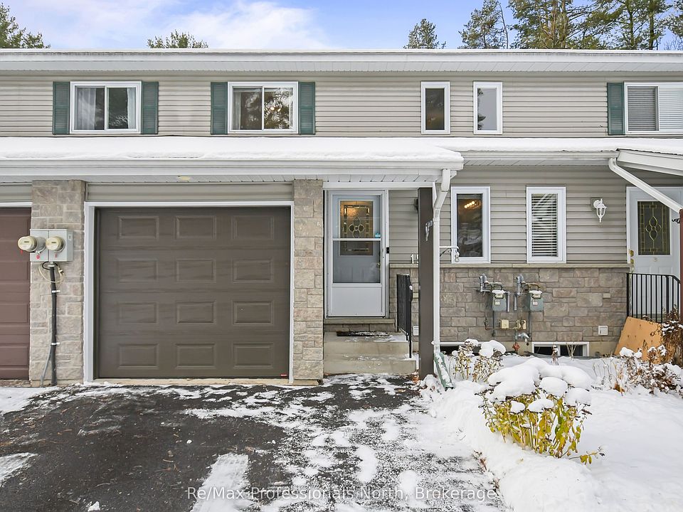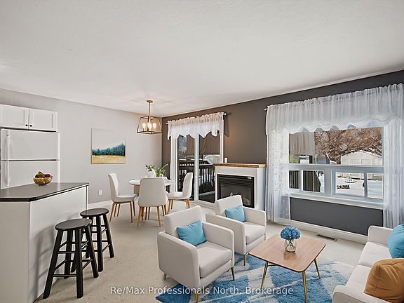 Welcome to this beautifully maintained 1627 sqft townhome with 2 bedrooms, 3 bathrooms and fully finished basement in the heart of Bracebridge. The main floor welcomes you with a bright, open-concept layout that seamlessly connects the living room, dining area, and kitchen. Enjoy a walkout to the back deck with views of the beautiful backyard-perfect for morning coffee or summer entertaining. The modern kitchen offers ample counter and cupboard space, ideal for everyday living, while a 2-piece powder room adds main-level convenience. Upstairs, you'll find a spacious primary bedroom overlooking the backyard and forest, along with a generous second bedroom and a large 4-piece bathroom. The fully finished basement provides excellent versatility, featuring a rec room, 3-piece bathroom, laundry area, utility room, and storage. The rec space can easily be converted into a third bedroom with its own ensuite, perfect for guests or extended family. Large windows throughout fill the home with natural light and offer views of mature trees and greenspace, creating a peaceful, Muskoka-like atmosphere right in town. Step out to the back deck and unwind beneath the charming covered pergola, surrounded by tranquil gardens.This home has been lovingly updated for low-maintenance living, with a new garage door, newer roof shingles (2020), newer paved driveway (2021), and a new shed/workshop roof (2025). Modern comforts include a new Ecobee smart thermostat with motion sensors, central air conditioning, and a cozy natural gas fireplace. Parking is generous, with space for two vehicles in the driveway and one in the garage, plus visitor parking right across the street. Outside, enjoy mature landscaped gardens, fully fenced, a large shed, covered deck, and fire pit area - perfect for cozy evenings outdoors. Located within walking distance to downtown shops, schools, trails, and local amenities, this clean move-in ready townhouse has pride of ownership and you can be in before Christmas!