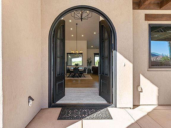 already plumbed for a bathroom, offers flexibility for a second master suite or a private casita. Modern conveniences like Anderson low-E windows, a power shade, and a TV mount in the living room that moves for viewing ease further enhance the home's thoughtful design.