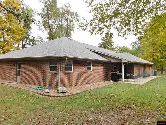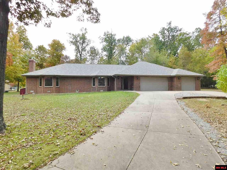 Quality all brick 3 bedroom 2.5 bath home w/3 car garage plus a 30x40 shop, resting on 3.89 wooded almost level acres. This quiet semi private park like acreage located just minutes to Bull Shoals Lake & the White River. The open floor plan with 2018 kitchen updates & a lg living rm with raised coffered ceilings & brick fireplace w/pellet stove insert. Mstr suite has bay window, marble walk-in shower, 2 sinks. Family RM has a pellet stove the roof replaced spring 2018, cement driveway, and so much more.