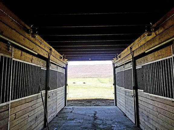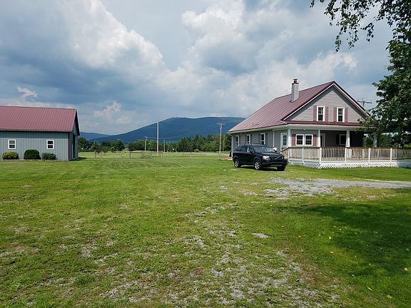 SOLD 10/04/18 This property has it all. Country style cape cod w/ beautiful mountain views. Home boasts hardwood floors throughout, large kitchen with eat at counter for 5, new double oven in 2018, tile bathroom, tile laundry room. In 2013 a new metal roof, insulation and vinyl siding. All appliances included, front load wash/dry, newer/quiet dishwasher, newer side by side refrigerator, electric range in island, brand new double oven. Replacement windows, room for another bedroom and full bath on 2nd floor next to other bedrooms. Easily turn into 2 bath/4 bedroom with storage. New in 2013, 250 ft. well and high pressure water system, new water heater 2017. New in 2017 HVAC/Reverse Heat pump, very efficient. Pellet stove, and oil furnace for 3 heating options. Large new deck in 2017 and wrap around porch. 5 car garage, 1 bay double deep for workshop, with an oil furnace! For the horses, a 36x48, 6 stall barn, padded flooring, hot and cold water, electricity and hay loft. 7 wire, hot cote fencing surrounds 4.5 AC pasture, great for goats etc. Also a 95x195 stone dust, lighted outdoor riding ring. Surrounding properties are larger and farmette style. Must See. State park and lake within 3 miles, allows hiking, horseback riding, camping. Quite peaceful area, gorgeous views of 2 mountains that come together, view across valley out the front of house. State route fabulously maintained esp during snow removal, and route is winding and not a lot of traffic, a definite plus when selecting your home.