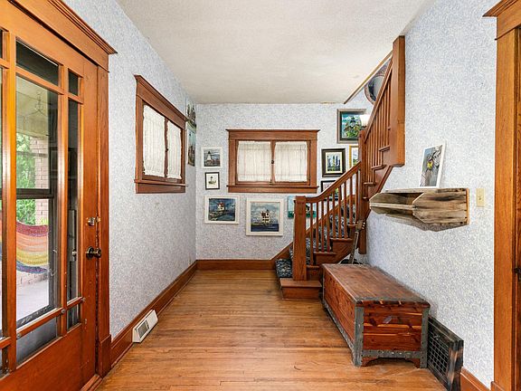 Welcome to this solid brick home centered on a spacious corner lot. A beautiful front porch greets you as you walk into this unique home featuring several custom original built-in cabinets throughout the main level, original wood floors and woodwork throughout. 7 spacious common areas on the main level. Featuring 3 bedrooms upstairs, each with its own walk-in closet. Private master 3/4 bathroom. Full open basement area ready to finish as you please with plenty of storage space. Additionally, there are 2 garages offering plenty of covered space. Close to schools, the community pool and downtown common areas, this property has so much to offer! Come see it today!