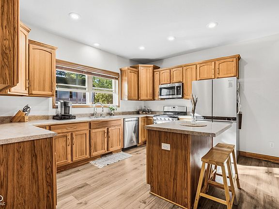 Welcome to the heart of downtown Knightstown! This beautifully maintained newer build offers four bedrooms, two and a half baths, and the perfect blend of comfort and functionality. The main-floor primary suite includes its own private sitting area and bath for added convenience. The bright, open main level features vinyl plank flooring, hickory kitchen cabinets with deep drawers, a generous island, and a gas range-all complemented by newer appliances, a water heater, and HVAC. The full basement is already roughed in for a bathroom, offering endless possibilities for future living space. A two-car detached garage with high ceilings provides plenty of room for parking and storage, while the welcoming back deck overlooks the yard-ideal for quiet mornings or evening gatherings. You'll love being just steps from Knightstown's charming downtown, where you can stroll to antique shops, cozy cafes, and the local ice cream parlor. Surrounded by tree-lined streets and beautiful Victorian-era homes, this neighborhood captures the perfect small-town atmosphere. Plus, it's an easy commute to Indianapolis and Hamilton County, giving you more home for your money and lower taxes without sacrificing convenience.