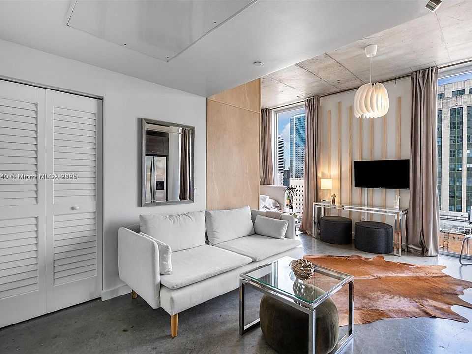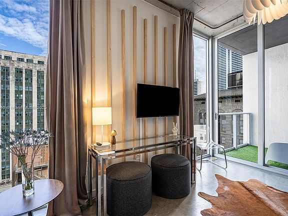 Prime location with stunning views of the Intracoastal and Miami's skyline. Enjoy beautiful sunrises from this luxury loft with high ceilings, great natural light, and stylish furnishings just bring your toothbrush. The building offers energy-efficient appliances, Italian cabinetry, a dishwasher, and in-unit washer/dryer. Features include epoxy floors, blackout shades, a custom closet, and a rain-massage shower, plus an open terrace. Amenities: rooftop pool, gym, lounge, basic cable and internet. Steps from Bayfront Park, Metromover, Whole Foods, and major highways. Available Dec 1, 2025.