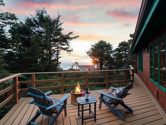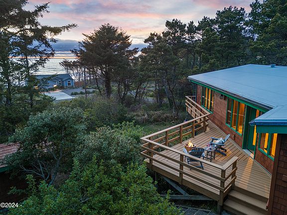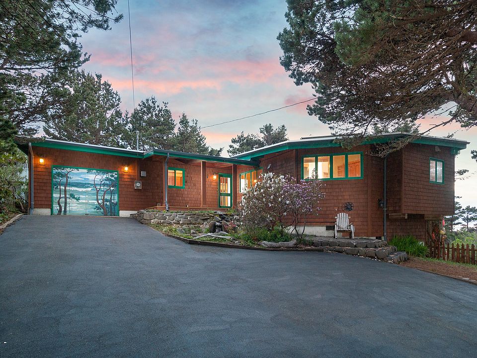 Welcome to Pelican House, where artistry meets coastal living in a harmonious blend of nature and creativity. This very unique residence seamlessly blends artistry with functionality, boasting open beam ceilings and maple floors that exude warmth and character throughout. Step inside and discover an open concept layout that invites natural light to dance across every corner of the home. Extensive use of tile accents the space, creating a visual feast for the senses. Skylights dot the ceiling, infusing the interior with an airy, sunlit ambiance, while a cozy fireplace adds a touch of comfort on cooler evenings. The heart of the home lies in its sunny deck, where you can bask in the glow of the sun and soak in panoramic ocean views. Listen to the soothing sounds of a welcoming waterfall as it mingles with the distant crash of waves, creating a symphony of tranquility that is uniquely Pelican House. Conveniently located within easy walking distance to the beach, this residence offers unparalleled access to the coastal lifestyle. Whether you're strolling along the sandy shores or exploring the vibrant local community, the best of coastal living is right at your doorstep. Indulge in the privacy and serenity of Pelican House, where every detail has been carefully curated to create a home that is as functional as it is beautiful. With its two deep garage providing ample space for vehicles and hobbies, along with a generous storage loft to accommodate all your belongings, this home truly has it all. Embrace the essence of coastal living at Pelican House - a place where the address sign and the graceful flight of pelicans serve as constant reminders of the beauty that surrounds you. Come, experience the magic of this one-of-a-kind home, where every moment is a masterpiece waiting to be discovered.