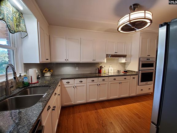 - RoomKitchenFeatures: Granite Counters, Ceiling Fan(s), Floors-Hardwood, Cabinets-Painted, Backsplash-Granite