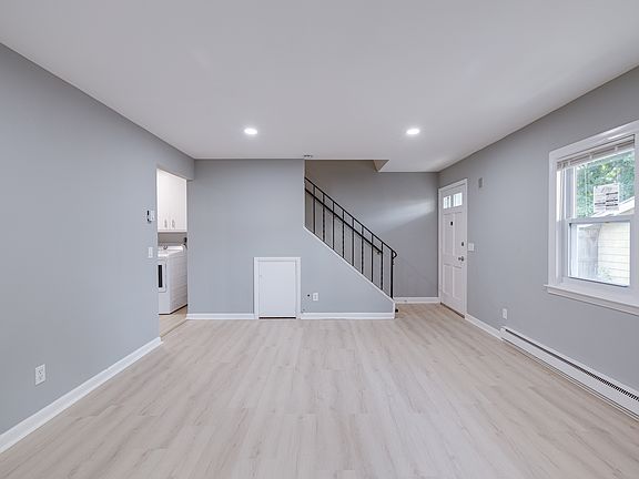 Looking for a charming and renovated place to live in the Cove neighborhood of Stamford? Look no further. This renovated 2 bedroom, 1.5 bath home features quartz kitchen countertops, stainless steel appliances, hardwood floors, and in-unit laundry. The main level of this features a spacious living room, eat-in-kitchen, half bathroom, and laundry area. On the upper level, you'll find two bedrooms and a full bathroom with double vanity. 2 off-street parking spaces included within a shared driveway. Landlord covers all exterior maintenance & trash. Good credit, income verification, background check, and rental application are required. Schedule a tour before it's gone. 2 months security. Tenant pays electric. Trash and water included.