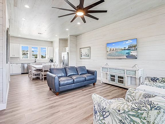 Welcome to 151 Seven Palms Drive — a fully furnished, waterfront coastal retreat offering 3 bedrooms, 2.5 bathrooms, and a spacious bonus room in one of Rockport’s most desirable private communities. This beautifully updated home is a true “shiplap dream,” blending timeless coastal style with modern comfort. From the moment you step inside, you’re greeted by bright natural light, crisp finishes, and an open-concept living area that showcases stunning views and effortless flow. The main living room features warm coastal tones, stylish furnishings, and shiplap accents that elevate the home’s charm. The kitchen offers modern appliances, generous counter space, ample storage, and a clean design perfect for both everyday living and hosting guests. All furnishings convey, making this a seamless turnkey opportunity for full-time living, a vacation home, or a short-term rental. The primary suite is spacious and inviting, complete with a well-appointed ensuite bathroom. Two additional guest rooms provide plenty of sleeping space, and the bonus room offers incredible flexibility — ideal for a second living area, bunk room, office, or media space. A convenient half bath adds functionality for guests. Step outside to enjoy true waterfront living with serene views, coastal breezes, and direct access to all the amenities this community provides. The private community pool offers the perfect place to relax, unwind, and enjoy sunny Rockport days. Whether you’re sipping your morning coffee waterside or spending the afternoon poolside, this home provides the ultimate coastal lifestyle. Move-in ready, fully furnished, beautifully finished, and positioned on the water — this property delivers everything buyers are looking for in a Rockport getaway.
