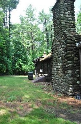 Unique Log Cabin home on beautiful grounds surrounded by towering oaks and pines. Year round porch and Florida Room, Beautiful glass den overlooks patio, deck and sprawling lawn. Cathedral ceilings, stone fire-placed living room/dining room, bar, exposed beams, pine floors, large bedroom, sleeping loft and eat-in kitchen. Brick walkways, small barn and shed, paved right of way to private drive. New roof, elec and well. Quiet serenity, only minutes from shopping, entertainment and major highways.