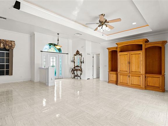 Located in the rapidly growing community of Lehigh Acres, this stunning 3-bedroom, 2-bathroom custom-built pool home offers over 1,900 sq. ft. of living space with a thoughtfully designed split floor plan. From the moment you step inside, you’ll appreciate the elegant tile flooring throughout the main living areas, while plush carpeting adds comfort to the bedrooms. The spacious master suite features his-and-hers closets, volume ceilings, and a luxurious en-suite bathroom with dual sinks, a walk-in shower, and a separate soaking tub—a perfect retreat. The gorgeous custom kitchen boasts stainless steel appliances, stunning cabinetry, and a cozy breakfast nook with a bay window overlooking the sparkling pool. A formal dining area provides the perfect space for hosting dinners and gatherings. Step outside to your pavered lanai and expansive outdoor living area, where you'll find a large swimming pool—perfect for enjoying Florida’s sunny weather. The east-facing pool area is ideal for both relaxation and entertaining, complete with a convenient pool shower and direct access to a pool bath. Additional highlights include an oversized 2-car garage, a new water heater, and hurricane shutters for peace of mind. Conveniently situated near Fort Myers, I-75, and SR-80, this home offers easy access to the airport, shopping, dining, sports stadiums, and parks. With NO HOA and NO FLOOD ZONE, this is a rare opportunity you won’t want to miss. Schedule your private showing today!