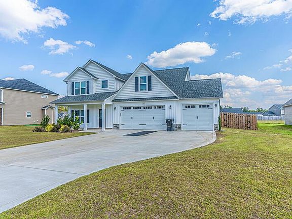 Stunning home for rent in Raeford, NC! This lovely 4 bedrooms / 2.5 bathroom home is available for move-in on December 11th! Upon entering the home you are greeted by a small foyer and a stunning formal dining room with modern light fixtures & a coffered ceiling. Through the dining room, you will find a butlers pantry and 1/2 bath. A large open floor plan makes this space ideal for entertaining. The kitchen includes beautiful stainless steel appliances, granite countertops, a kitchen island, and a modern tile backsplash. The spacious living room space includes a beautiful stone fireplace and tons of natural lighting. A first-floor master suite includes trey ceilings, plush carpets, a large walk-in closet, double sink vanity, standalone shower, & garden tub. A private laundry room can also be found on the first floor. Upstairs the 3 remaining bedrooms and full bathrooms can be found. All including plush carpets, closet space, and the perfect amount of natural lighting. This home features a 3- car garage and a large fenced-in yard with a private back porch. Just a short commute to Fort Liberty and surrounding shops & restaurants! Don't miss out on this gorgeous home, it won't last long!