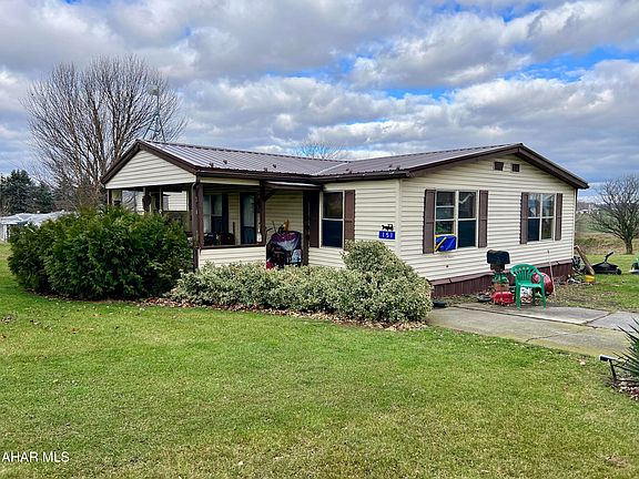 Manufactured home located outside of town offering great views of the countryside. The home features 3 bedrooms, 2 baths, living room with fire-place, eat-in kitchen, & laundry. Outside, you will find a covered porch, new metal roof (2024), detached 1 car garage, large yard, and raised garden beds.
