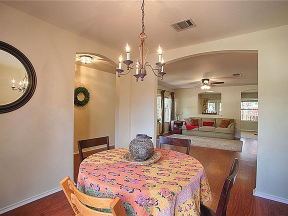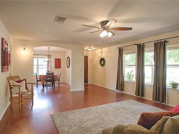 3-2-2 large corner lot. One story 1572 square foot well laid out charming home. Covered porch and large back covered patio with three fans. Wide driveway for extra parking. Huge HIghlands Wooden Play scape shaded by beautiful trees in back yard fully mulched. 2018 - new laminate flooring in kitchen and bathrooms. New A/C 2014 and New Roof 2013. Large kitchen overlooks back yard and covered expanded patio with three fans. Large Master with cove ceiling has Private Bath. Secondary baths and bedrooms are spacious. Kitchen has island with electricity and lots of cabinets. Community Amenities include pool, playground and green space. Close to downtown Buda, South Park Meadows, Hays County Schools and Sports center nearby. See pix to appreciate!