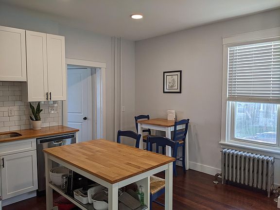 This apartment is open concept with stainless steel appliances, beautiful butcher block counters, and stylish laminate flooring. Appliances included in the apartment are fridge, gas range, garbage disposal, and dishwasher. The apartment is unfurnished, but does come with a kitchen island, pub-height table, and two spacious wardrobes in the bedroom; kitchen stools not included. This property has a no pets policy. Off-street parking is not available, however, there is plentiful parking nearby and no borough parking permits are required.