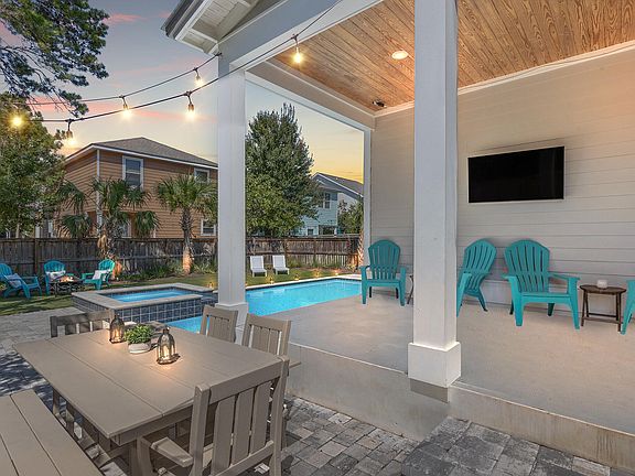 This tastefully decorated and move-in-ready home is being sold fully furnished. It includes a six-seat golf cart and a new private 14x30 saltwater pool and spa in one of the largest, and fully fenced, backyards in the neighborhood! The home also boasts a pristinely manicured yard and back porch area that is perfect for entertaining or relaxing after a long day at the beach.