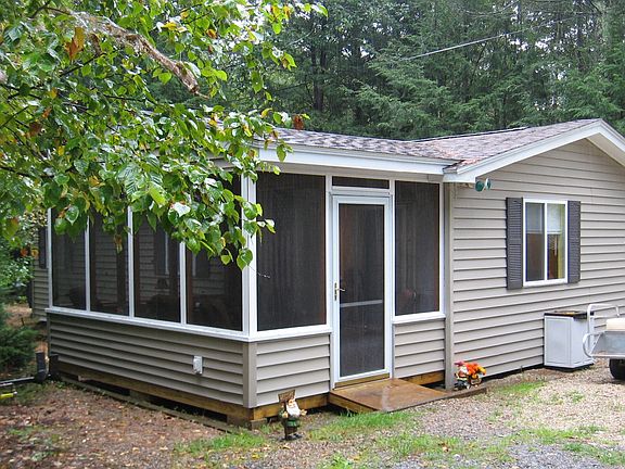 Come and enjoy the beautiful, serene sounds of nature while vacationing in your new summer getaway! Home is in great condition located on a larger than typical lot. Attractive laminate floors throughout. Two full baths, two bedrooms. Extra-large living room with knotty pine ceilings is great for entertaining or just relaxing. Just off of the living room through a French door is a gorgeous finished 10' x 14' screened in porch with knotty pine walls and ceiling. Bedrooms have new built in knotty pine closets and storage and are wired for cable/internet/telephone. This place wouldn't be complete without a built in fire pit ready to toast s'mores! Shed has washer/dryer. Heat is forced hot air by propane. Come see for yourself copy this link into your browser: http://s1148.photobucket.com/user/Joey670/slideshow/ Plenty of space for the entire family to come, sit back and relax. For only $1200 per year, you have beach rights to beautiful Sip Pond where you can swim, boat, fish or jet ski! Newly renovated in-ground pool with cabana, horseshoes, bocce courts, tennis courts, basketball, and lots of organized activities for all ages. Clubhouse with pool table, darts and full kitchen, boat launch, 2 newly renovated community bath houses and laundry facilities. All roads are plowed and Sip Pond is a perfect spot to ice fish, ice skate or snowmobile. Fee also includes electricity, water, sewer and trash. Where else can you vacation for $100 per month and own your land and the house/shed in a seasonal, gated community? Serious inquiries only please. $77,900.