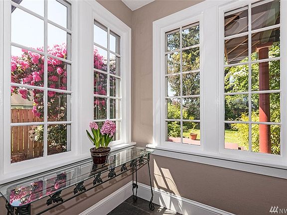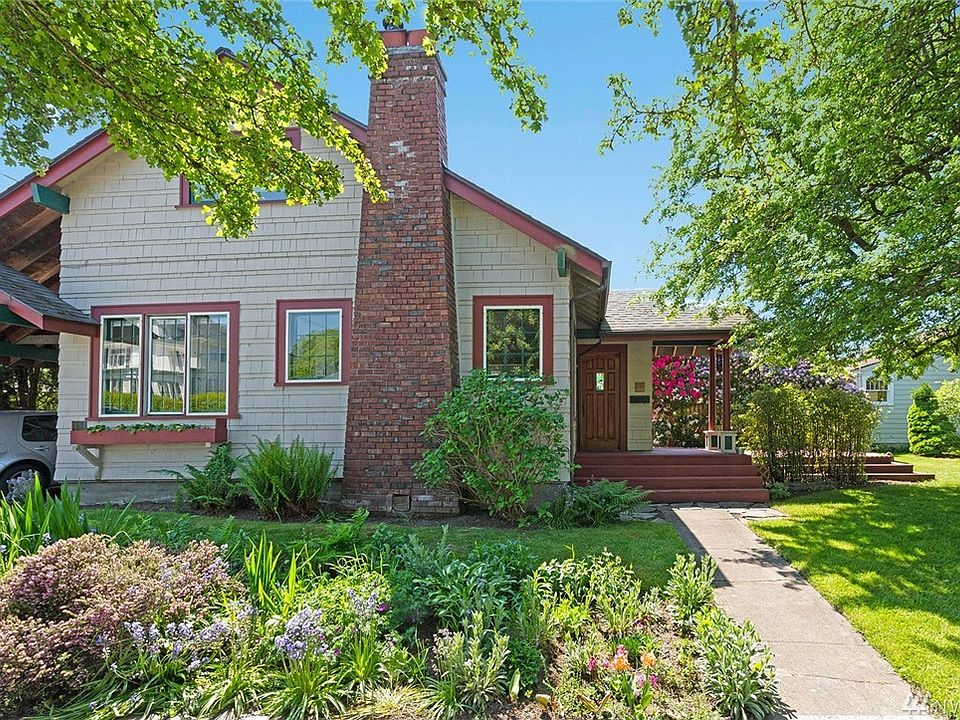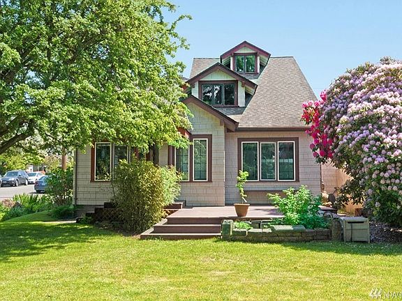 Situated on landscaped corner lot, this craftsman beauty boasts old world charm with modern finishes. Classic fir floors, wood-wrapped windows, white cabinetry & trim, quartz countertops in kitchen, granite counters in main bath, living rm w/wood frplc, dining room w/French doors & tons of storage, 2 spacious BRs, loft w/sound & mtn views, cozy reading nook, custom built-ins thru-out. Great location surrounded by tree-lined streets & historic homes. Close to hospital, EVCC, & waterfront park.
