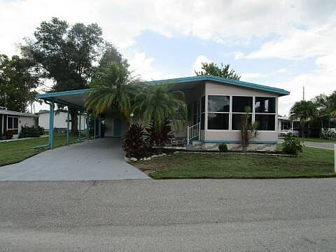 PRICE DROPPED - Step into comfort and style with this beautifully maintained, fully furnished 2 bedrooms, 2 bath mobile home. Situated on a corner lot within a friendly, gated community with numerous amenities and just a very short walk to the clubhouse and pool. This turnkey home is move-in ready and features tastefully updated décor and furnishings. The updated kitchen is conveniently located as you enter the sliding glass entry door. The new stainless steel wall oven is a highlight of the kitchen, as well as the newer flat countertop range, deep double sink, Kenmore refrigerator, dishwasher and pantry. There is laminate flooring throughout, vinyl floors in both bathrooms, and drywall walls. Enjoy morning coffee in your raised 10 x 12 front FL room off the living area. With an exceptionally long-covered carport, you'll have plenty of protected space for at least 2-3 vehicles. Exterior features include - Membrane roof '18; Comfort Maker C/H/A '05; 8 x 10 utility shed with Amana washer/dryer/ This home offers a comfortable and convenient lifestyle from day one. Lot rent is $779. Call Jean to schedule an appointment to view this exceptional home.