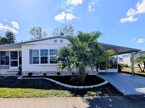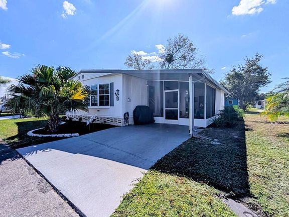 2 Bedrooms | 2 Full Bathrooms | 840 Sq Ft | Offered at $39,900 Welcome home to the peace and freedom you deserve. Located in the exclusive, active 55+ gated community of Woodbrook Estates, this charming, modern manufactured home offers the perfect setting for relaxed retirement living without the burden of extensive upkeep. The home boasts a bright and spacious open floor plan, perfect for entertaining and family visits, featuring low-maintenance laminate flooring throughout. The living area flows seamlessly into the spacious open kitchen, which features full-size appliances, ample cabinetry, and a pantry. The entire home is an oasis of calm; the walls are painted in neutral pastels and tastefully decorated with a subtle coastal feel, enhancing the bright atmosphere. An abundance of light streams through the six beautiful bay windows and bathes the dining and living areas. Sliding glass doors lead from the living room directly onto the main screened lanai, offering a relaxing outdoor space that continues the serene coastal motif. For added enjoyment, a second screened lanai with comfortable patio furniture is conveniently located at the end of the driveway. Best of all, this home is offered fully furnished and turnkey, including all décor seen in the pictures, allowing you to move in with zero hassle. Additional practical features include the washer and dryer located in a convenient utility room off the carport, plus the home is equipped with a reliable HVAC system installed in 2019. The private primary suite is a comfortable sanctuary, featuring a large walk-in closet and an en-suite bathroom with a step-in shower designed for safety and ease. Separately, the versatile secondary bedroom is ideal for a guest suite, dedicated office, or hobby room. The guest bathroom is conveniently located just off the hallway and includes a tub/shower combo. The real benefit is the resort-style community lifestyle. Your low monthly fee covers exterior maintenance, and access to fantastic amenities, including: Heated Pool and Spa, Active Clubhouse with daily events and fitness classes, Secure, Gated Access. Ready to start living? Contact us to arrange your private tour of the home and the Woodbrook Estates community grounds. Sellers are motivated and will consider all reasonable offers! All homes are sold 'As Is' without warranties or guarantees by seller and/or Broker. All listing information is deemed reliable but not guaranteed and should be independently verified through personal inspection and/or by appropriate professionals. The buyer assumes full responsibility for obtaining all current rates of lot rent, fees, or pass-on costs associated with the community, park, or home from the community/park manager