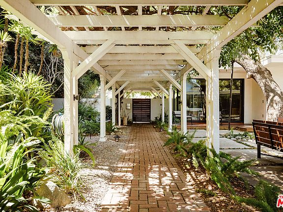 An extraordinarily private, park-like setting provides the ideal backdrop for this South Pasadena architectural compound. Initially developed from what had been the carriage house of the La Willinda estate- a 1914 design by architect Louis duP Millar for lumber merchant W.E. Cooper. The Irish born architect, who was also coincidentally cousin to radio inventor Marconi, was an important figure in early 20th century Pasadena architecture. It is a legacy that is still evident today- most notably along the Arroyo, on California Blvd and Green Street. The property was recently transformed and expanded by its artistic owners- with a glass walled intervention to the original Millar structure creating a modern kitchen, dining, and living area. It draws a distinct line between the 1914 building and recent addition, gracefully bridging it to the storied history of the long ago adapted and recently restored carriage house. Fleetwood doors and windows wrap the high ceilinged and open plan addition in glass. A gourmet kitchen with a luxurious mix of finishes and all Thermador appliances is at its center. Walnut built-ins, European Oak plank flooring, Italian tile, and vintage mid-century lighting add to its distinctive character. An extensive and detailed updating of the home's systems was undertaken at this same time. Additionally- a newly-built, detached two car garage and adjoining guest house with full bath + kitchenette establish total privacy facing Chelten Way. Beyond the circular driveway and front gate, a 40 ft brick entryway path is shaded by a pergola and the 90-year-old Wisteria that is woven through it. An updated, heated, and centrally positioned pool further bolsters the property's oasis-like feeling. The surrounding gardens are remarkably tranquil and lush; with meandering pathways, manicured landscaping, and mature Oak, Carob, Podocarpus, Japanese Maple, Olive and Grapefruit trees. A truly unique property in one of the most desirable enclaves of South Pasadena- it must be experienced in person in order to fully grasp all that it has to offer.