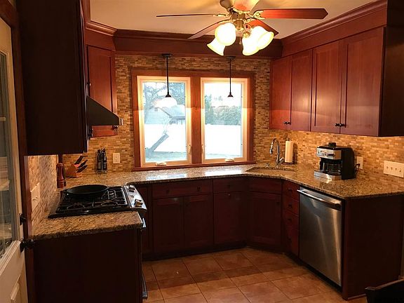 Open Sun. 6/10/18 12-2. This Brick Cape has it all!! 3 bedrooms, 1 1/2 updated baths. New kitchen with Granite countertops, Stainless Steel appliances, Ceramic tile. Beautiful hardwood floors throughout. Living room with fireplace, dining room with built-in corner china cabinets. Three Season Room and separate hot tub room (Hot tub for 6 people stays). Finished family room in the basement. All new windows and 4 year old roof. READY TO MOVE INTO!!!