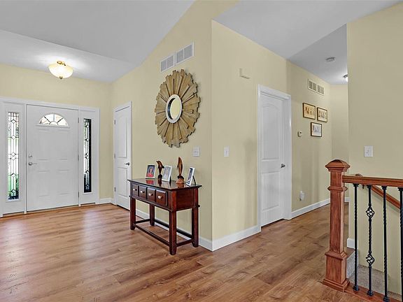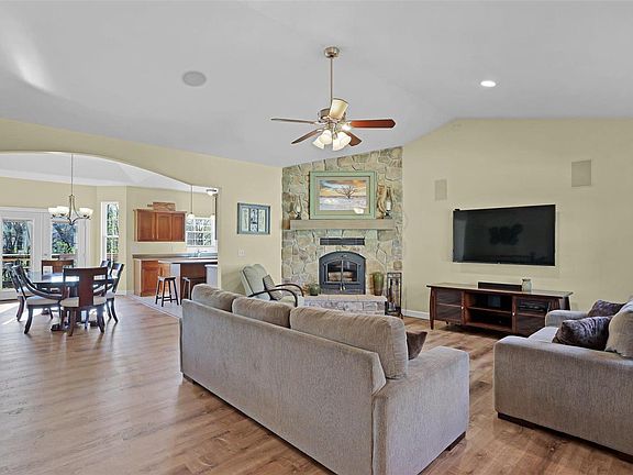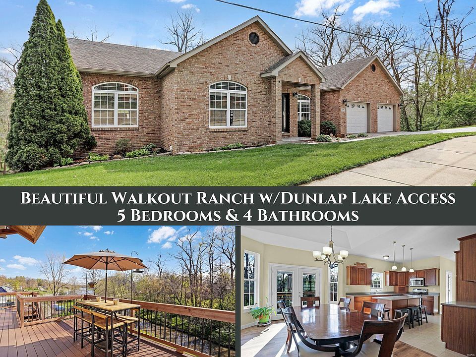Escape to wonderful water views of Dunlap Lake! A stamped concrete pathway leads you inside to the spacious living room featuring a captivating stone fireplace. The open floor plan seamlessly connects the dining area to the well-appointed kitchen, complete w/ large island, abundant cabinets & stainless appliances. Conveniently adjacent to the 2-car garage, is laundry/half bath. Retreat to the owner's suite boasting a tray ceiling, deck access, walk-in closet & lavish ensuite bathroom w/ large soaking tub, dual sinks & walk-in, dual-headed shower. 2 add’l bedrooms & a full bath complete the main level. Descend to the walkout lower level, where entertainment awaits w/ a wet bar, full bath & 2 BRs (one w/ exterior access via small storage garage). Outside, the deck offers serene views of the creek & woods, perfect for enjoying the tranquil surroundings. Experience the joy of lake life with fishing, boating & Glik Park just a short walk away--all within the heart of Edwardsville.
